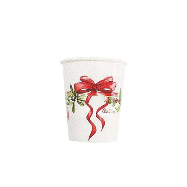 Bicchieri in carta con stampa natalizia. Bicchieri capacità 250 cc perfetti per allestire la tua tavola di natale in modo semplice ed elegante regalando un'atmosfera natalizia alla tua tavola. Disponibili quattro fantasie: