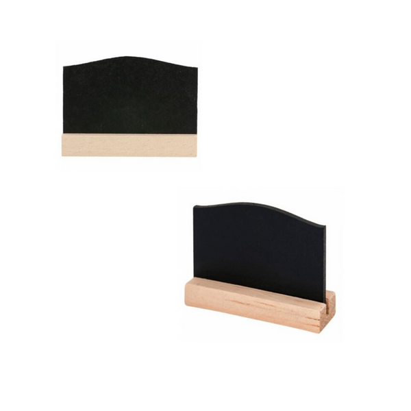 Lavagna da tavolo scrivibile bifacciale con supporto in legno. Pratica lavagnetta ideale per identificare i tuoi prodotti nella vetrina o come segnaposto al ristorante, bar, gelaterie, fast food, pasticcerie, taverne. Simpatica anche per comunicare un messaggio di benvenuto ai tuoi clienti. Potrai scrivere e cancellare su queste lavagne con pennarelli effetto gesso oppure in alternativa anche con il classico gessetto bianco.