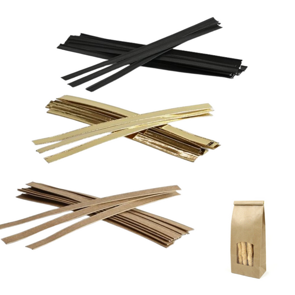 Fascette in carta con anima in metallo perfette per chiudere sacchetti velocemente.