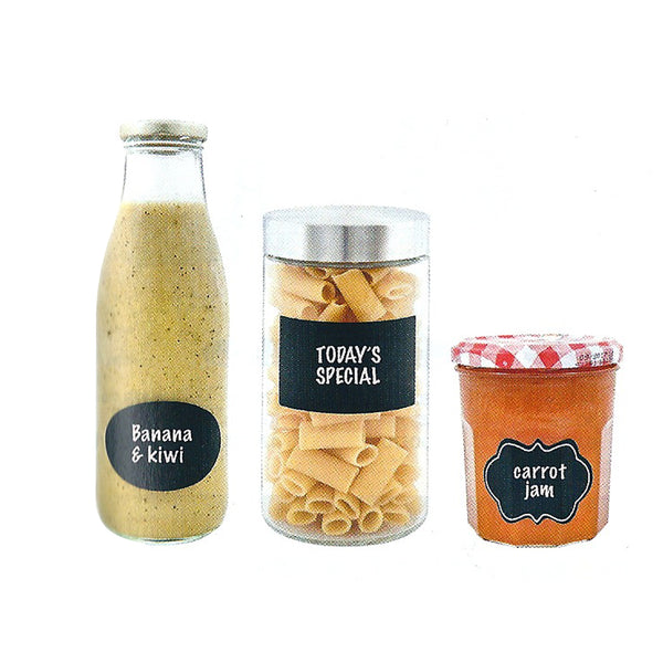 Etichette nere adesive in vinile scrivibile con pennarello bianco disponibili su questa pagina. Assortimento di etichette fustellate adesive per vasetti, shopper e confezioni regalo, comode per personalizzare il vostro prodotto con stile. Pennarelli bianchi indelebili da utilizzare per scrivere sulle etichette nere.