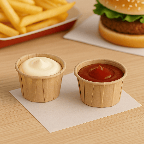 Vaschetta per Salsa in carta antigrasso color avana ideale per contenere e presentare le tue salse in modo impeccabile. Il pirottino monouso è realizzato in carta sostenibile, perfetto per essere utilizzato come contenitore per alimenti o per presentare con stile i tuoi dolci semifreddi. Ideale per eventi, buffet o catering, questa vaschetta sarà il compagno perfetto per servire i tuoi piatti con eleganza e rispetto per l'ambiente.