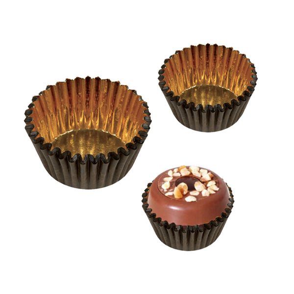 Pirottino in carta marrone con interno oro. Elegantissimo e prezioso, perfetto per rendere straordinarie le vostre opere di piccola pasticceria o cioccolatini.