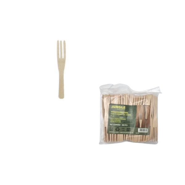 Forchettine in legno monouso ideali per buffet e aperitivi. 100% Biodegradabile. Mini forchette in legno e bamboo ecofriendly colore naturale. Modello a 3 punte. Lunghezza della forchettina 8 cm.