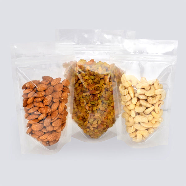 Sacchetti chiusura zip modello trasparente progettati per offrire una visuale completa del prodotto al suo interno. Sacchetti idonei al contatto diretto con alimenti, possono essere utilizzati per confezionare e conservare in modo sicuro cibi come snack, frutta secca, dolci e altro ancora. La chiusura zip permette una facile apertura e chiusura del sacchetto, mantenendo il contenuto fresco e protetto dagli agenti esterni come umidità e aria, soluzione pratica ed efficiente per l'imballaggio alimentare, sia per uso domestico che commerciale.