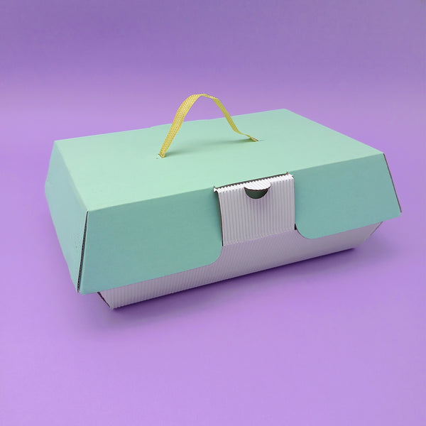 Scatole pasticceria con coperchio e laccetto. Scatola per pasticceria in cartone per alimenti perfetta per l'asporto di piccola pasticceria e può diventare un pratico e bellissimo vassoio oro nella vostra tavola. La base è in cartone bianco rigato esterno, interno oro; il coperchio in cartone colore tiffany. Il prezzo comprende base + coperchio con cordellino oro per asporto. La scatola si chiude grazie alle alette presenti lateralmente alla scatola.