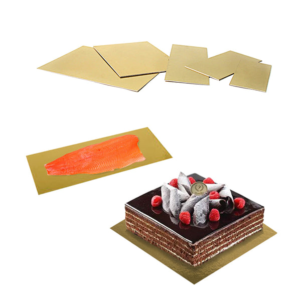 Sottotorta oro. Stecche colore oro per pasticceria in cartone rigido grammatura 2400gr/m2 con bordo liscio, sono classiche ed eleganti utilizzate in pasticceria come sottotorta. Le misure indicano in ordine la misura della base e la lunghezza del prodotto.