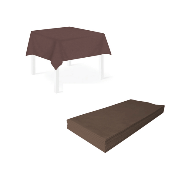 Tovaglia monouso marrone in Tnt Tessuto non Tessuto 100% Polipropilene Riciclabile.. Tovaglie colorate proposte nel formato cm 100x100 perfette per vestire la tua tavola e ideali per aggiungere un tocco di colore e stile. Ogni confezione offre praticità, con tovaglie piegate pronte all'uso.