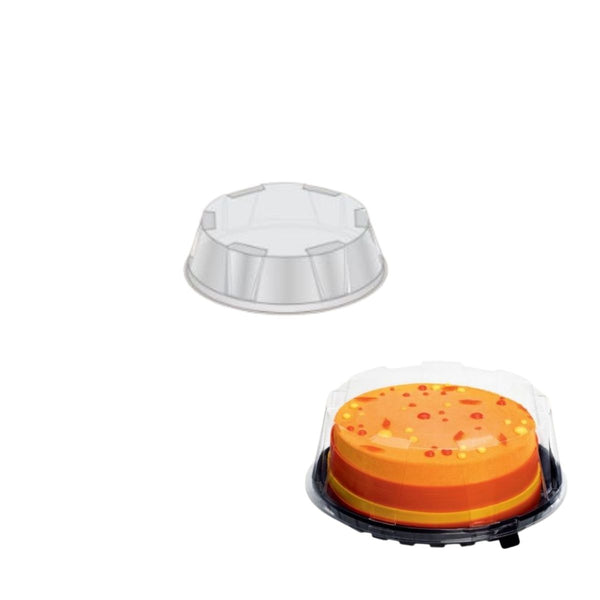 Contenitore porta torta per torte alte. Vaschetta professionale per alimenti ideale per contenere torte alte. Vaschetta resistente per pasticceria e forni con base rigida di colore nero e coperchio trasparente. Base e coperchio vengono venduti separatamente su questa pagina.