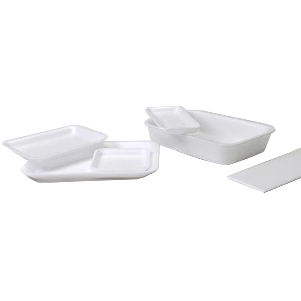 Vassoi polistirolo idonei al contatto diretto con alimenti. Vassoi utilizzati da pasta fresca, alimentari, macellerie, ortofrutta, questo articolo è un classico usato nel settore alimentare. Le misure indicano in ordine lunghezza, larghezza e altezza della vaschetta della parte superiore: