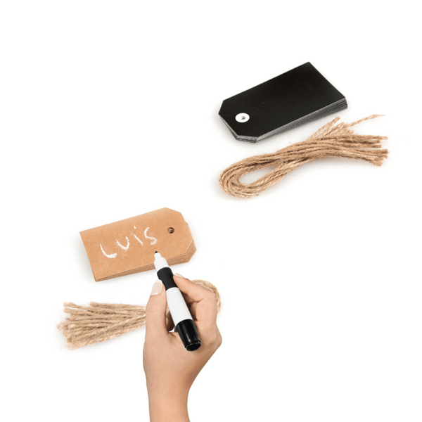 Cartellino con foro e spago. Questo set comprende cartellini e laccetti. Puoi usarle i cartellini per completare le tue confezioni regalo o per identificare gli ordini prenotati dai tuoi clienti. Il materiale dei cartellini è fatto per permetterti di scriverci sopra facilmente.