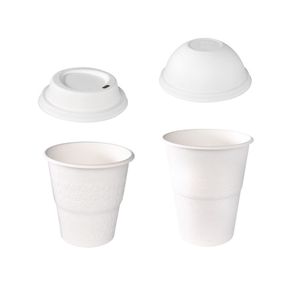 Bicchieri biodegradabile in bagassa. La bagassa, un materiale circolare residuo della lavorazione della canna da zucchero. Nella scheda troverai tre basi di bicchieri con tre diverse capacità e tre divesi modelli di coperchi, piatto, cupola e con beccuccio. I bicchieri hanno una base lavorata con decori leggermente in rilievo che rendono questa linea davvero speciale.