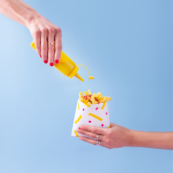 Sacchetti di carta antigrasso per alimenti. Linea disegnata da Pack à Porter venduta esclusivamente da Imballaggi360. Questo sacchetto per alimenti nasce per contenere patatine fritte o fritti, perfetto anche per contenere dolci e salati come ciambelle, cookies, salatini. Per chi cerca un packaging di tendenza e pratico, per colorare di energia la tua attività di fast food, bar, piadineria, birreria o enoteca.