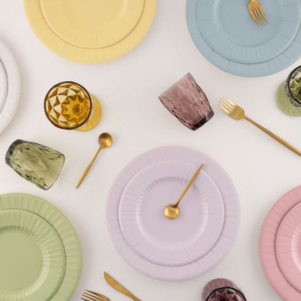 Piatti in carta colori monocolore pastello Compostabili, sono la scelta perfetta per aggiungere un tocco di vivacità ai tuoi eventi. Questi piatti in carta colorata possono fungere da piatto piano da portata o divertente sottopiatto, adattandosi a una vasta gamma di occasioni, come feste di compleanno e altri festeggiamenti. Grazie alle loro ampie dimensioni, questi piatti sono pratici e funzionali. Disponibili nei colori rosa, verde, giallo e azzurro, scegli il tuo colore preferito!