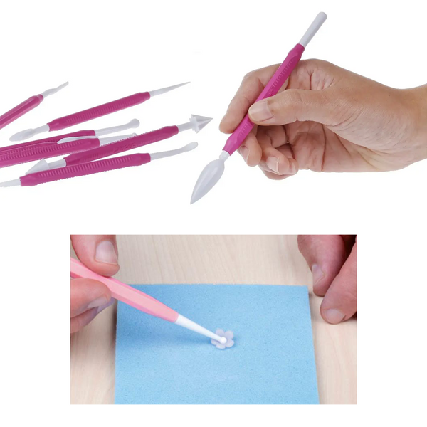 Set di 8 strumenti multifunzionali per decorazioni è il compagno ideale per il modelling e le finiture in 3D di ogni tipo di pasta modellabile. Ogni attrezzo è realizzato con cura e precisione in Italia, garantendo la massima qualità. Ogni strumento è dotato di una doppia estremità, offrendo una varietà di opzioni per la creazione di dettagli precisi e finiture impeccabili. L'innovativo manico ergonomico assicura un'impugnatura stabile durante l'utilizzo, consentendo una maggiore precisione e controllo.