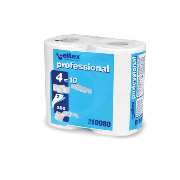 Carta igienica compatta 100% cellulosa 2 veli dermatologicamente testato. Ogni rotolo ha 500 strappi. Morbida e pratica la carta igienica compatta ha una resa di 4 rotoli che corrispondono a 10 rotoli tradizionali.