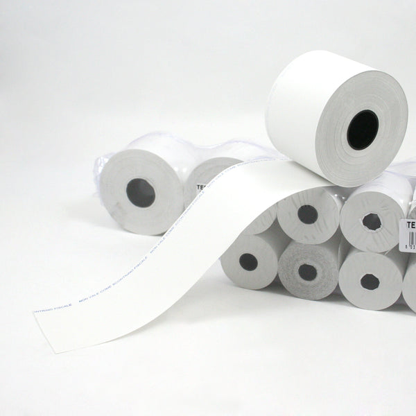 Rotoli termici in carta bianca di alta qualità, ideali per bilance elettroniche. Resistenti e affidabili, garantiscono una stampa chiara e duratura per scontrini e etichette.
