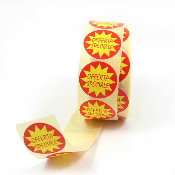 Etichette offerta speciale, utili per segnare i prodotti in offerta, disponibile in pratico rotolo.