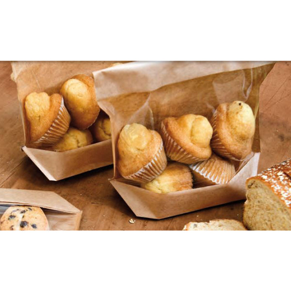 Sacchetto per alimenti con pratica banda adesiva per la chiusura. Confeziona i tuoi panini e alimenti da asporto con facilità grazie al nostro sacchetto per alimenti. Realizzato con carta avana sul retro e fronte trasparente, il sacchetto offre una chiara visibilità del contenuto. Dotato di un pratico soffietto sul fondo e di una banda adesiva per una chiusura sicura e comoda. Scegli il nostro sacchetto per alimenti per una confezione pratica e professionale.