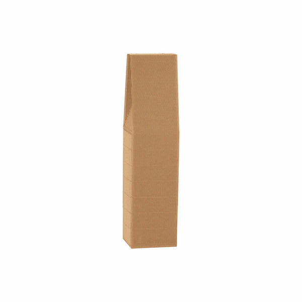 Scatole portabottiglie senza finestra in cartone onda avana per contenere una bottiglia. Scatola confezione regalo semplice, economica e dal gusto neutro, può essere impreziosita con l'aggiunta di nastri.
