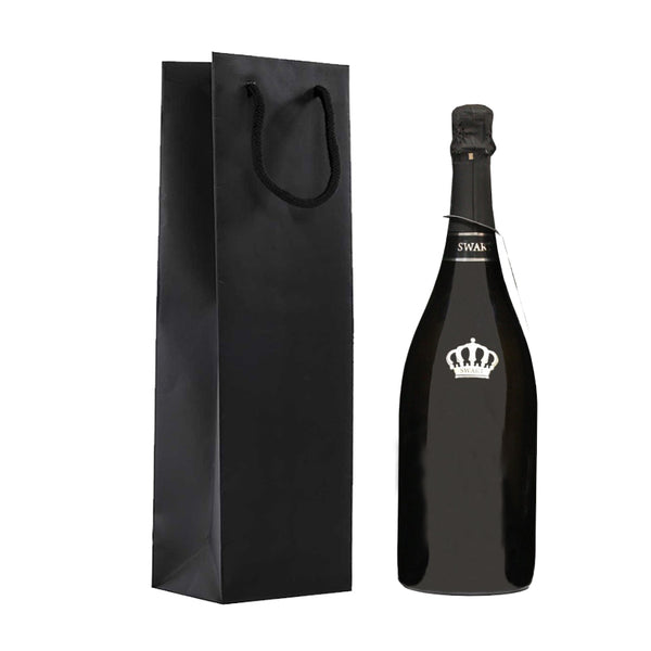 Sacchetti portabottiglie nero con manico cordino elegante. Sacchetto per vini adatto a contenere bottiglie grandi come bottiglia magnum. Materiale: Carta Biokraft 100% riciclata di altissima qualità. Realizzata con percentuale di resine naturali che la rende resistente all'umidità. Prodotto completamente riciclabile certificato FSC e compostabile. Grammatura della carta 170 gr.