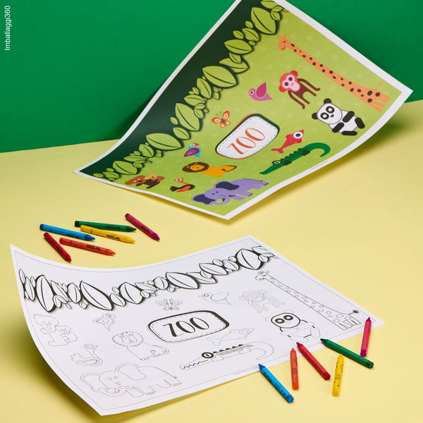 Queste tovagliette americane in carta di cellulosa idonea al contatto alimentare sono pensate per trasformare l’attesa in un momento creativo. Formato pratico da 43x31 cm, perfette per ristoranti, pizzerie, bar, gastronomie o qualsiasi occasione in cui ci siano bambini da intrattenere.