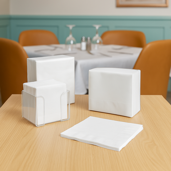 Tovaglioli di carta bianchi monouso, disponibili in diversi formati e qualità per soddisfare ogni esigenza. Tovaglioli di carta modello classico, economico.