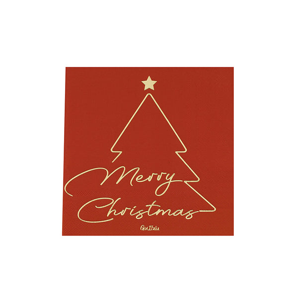 Tovaglioli in carta rosso scuro con stampa natalizia. Formato classico cm 33x33 con decoro stampa Natale. Nel nostro shop sono disponibili in abbinamento anche tovaglia rossa, piatti e portaposate per completare la tavola e ottenere coordinato perfetto. Tovagliolo a 3 veli.